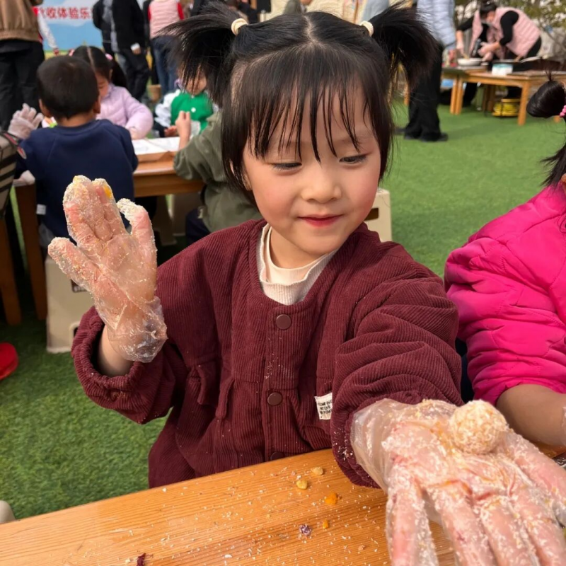 美食制作区飘来阵阵香甜,孩子们在老师指导下制作“红薯椰蓉球”“牛轧糖”等秋日美食,亲身体验“从田间到餐桌”的完整过程,各式美食琳琅满目,孩子们在品尝中学会感恩,懂得珍惜。