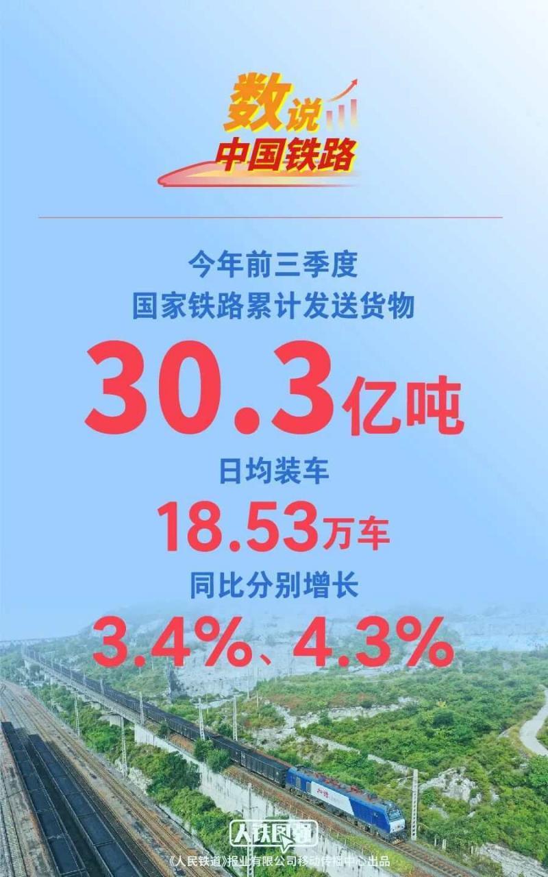 今年前三季度国家铁路发送货物30.3亿吨 同比增长3.4%