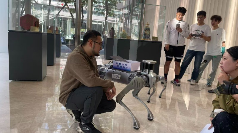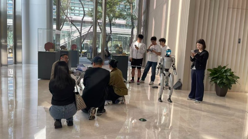 在北京金融科技中心的一层大厅,3个机器人在苦练“绝活”,跳舞、翻筋斗、倒立、搬运……这些机器人来自北京建筑大学的科研团队。值得一提的是两款机器狗(四足机器人)具有灵活的运动能力和高效的控制算法,配备高清摄像头和激光雷达,具备出色的环境感知和自主导航能力,最大负载能力达到120公斤。它们将在2025金融街论坛年会期间承担一些特殊场景的“迎宾”服务工作,如在金融街购物中心广场发放“服务手册”等。