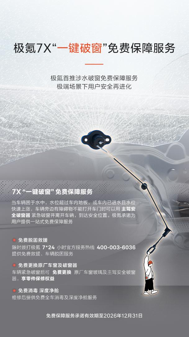 极氪7X推出一键破窗免费保障服务,行业首创紧急救援新模式