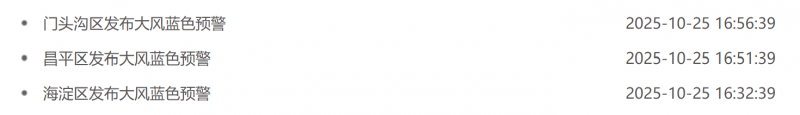 25日下午,北京市气象局连发3区大风预警,请注意防范: