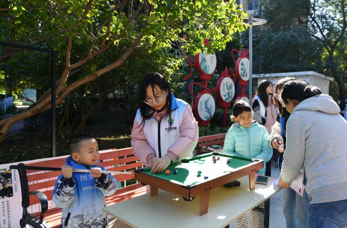 各年龄段居民齐聚于此,老人们在落叶间寻觅乐趣,孩子们在嬉戏中亲近自然,这样一场秋日盛会让社区充满烟火温情与邻里暖意。