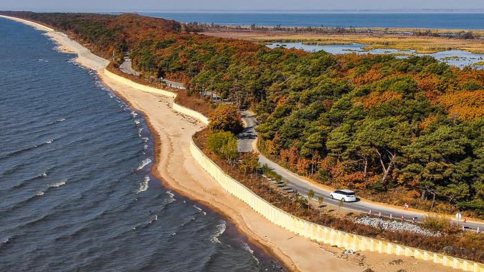 10月24日拍摄的黑龙江省鸡西市密山市兴凯湖湖岗秋景(无人机照片)。新华社发(黄永兴摄)
