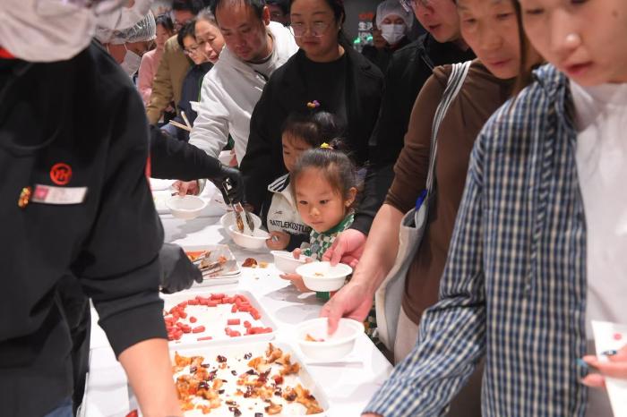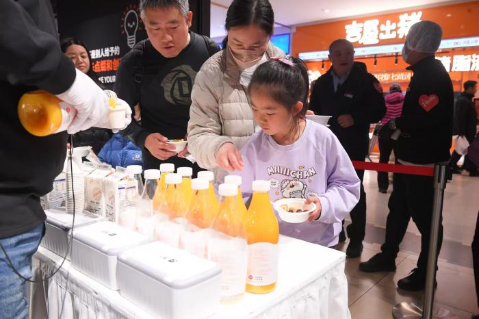 北京石景山喜隆多购物中心的永辉超市,一场美食品鉴会吸引了众多试吃的顾客。