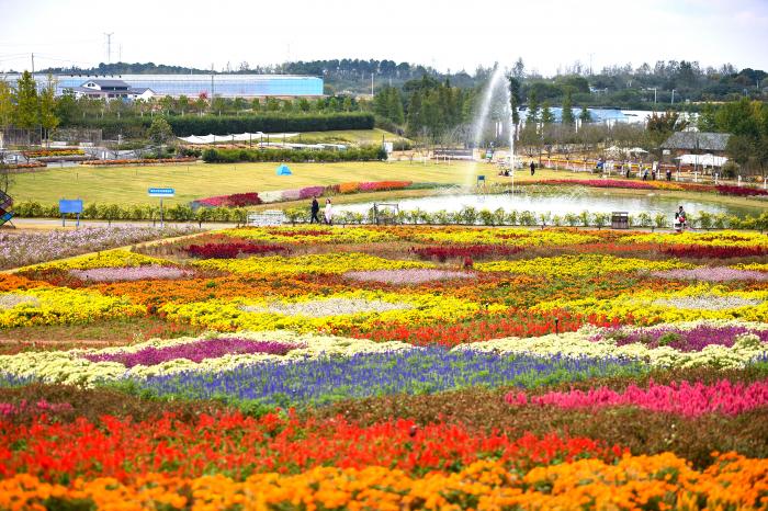 10月25日,游客在江苏镇江句容市的伏热花海庄园内赏花游玩。新华社发(杨素平 摄)