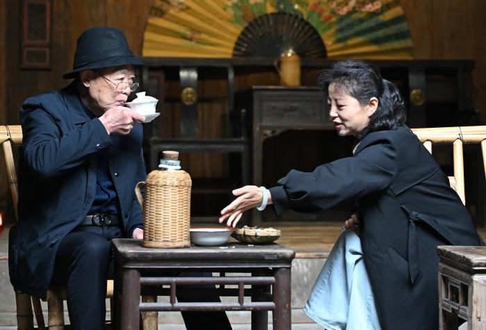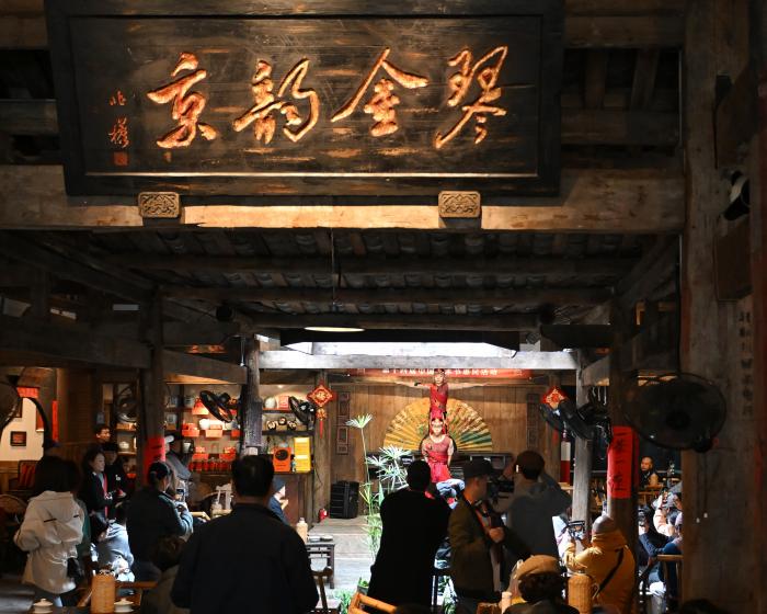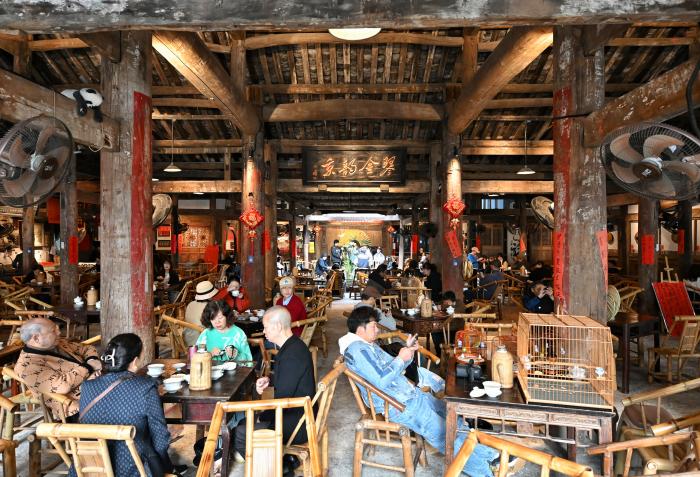 10月25日,茶客在成都金琴老茶馆内休闲。这间茶馆用清代建筑材料改造而成。