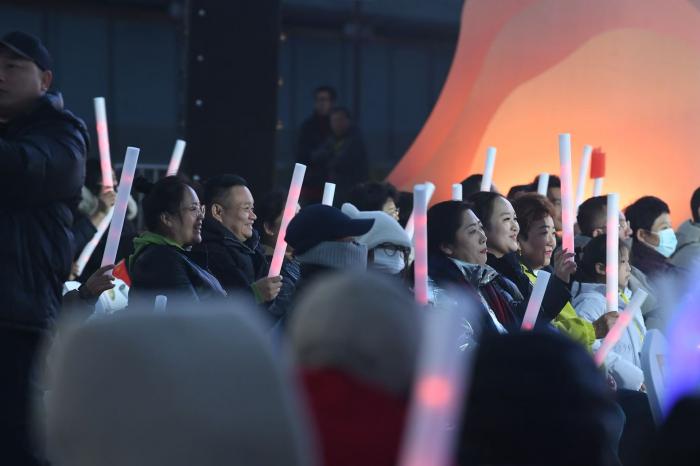 观众挥舞荧光棒为演员们喝彩。
