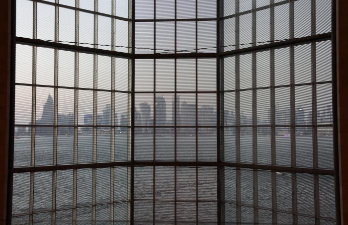 这是11月3日在卡塔尔首都多哈卡塔尔伊斯兰艺术博物馆内拍摄的多哈城市景色。新华社记者 沙达提 摄