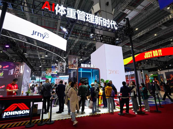 11月8日,参观者在第八届进博会消费品展区乔山健康科技集团展台的智能体测仓体验。新华社记者 杜昕怡 摄