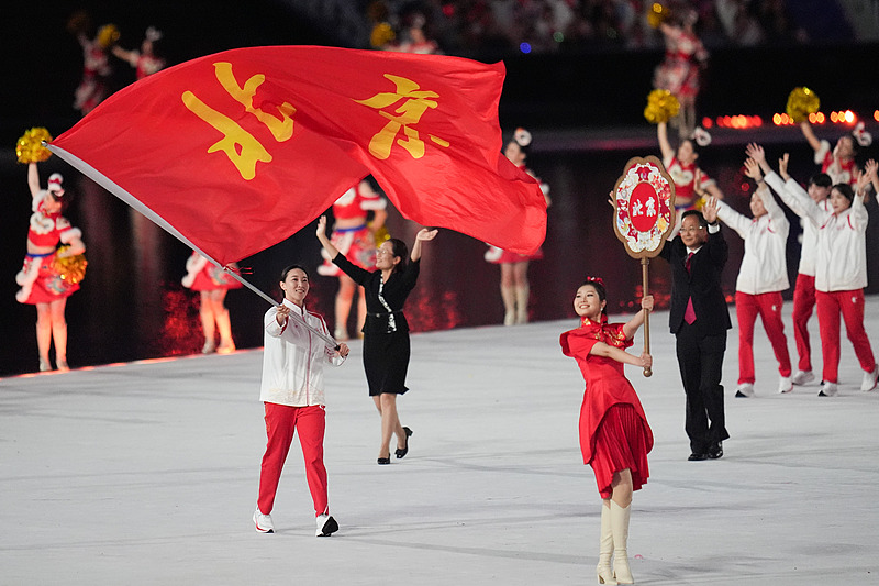 11月9日晚8时,万众瞩目的中华人民共和国第十五届全国运动会开幕式,在广东省奥林匹克体育中心隆重举行。本届全运会的开幕式以“圆梦未来”为主题,设置“同根同源、同心同缘、同梦同圆”三个篇章,呼应粤港澳三地“同声同气”的联结。北京市体育代表团在旗手、巴黎奥运会花样游泳集体项目金牌得主冯雨的引领下,迈着整齐的步伐,在裁判代表方阵后第一个步入会场,受到现场数万名观众的热烈欢迎。