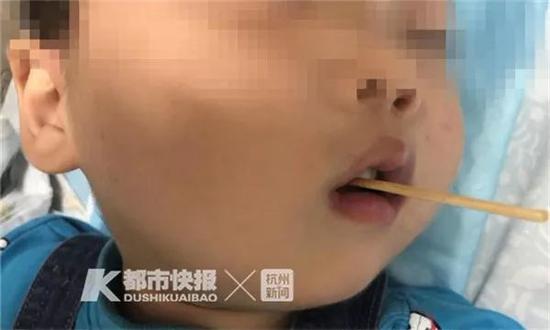 竹签插得比较深,当地的医院没办法处理,连夜转到了浙江省儿保。