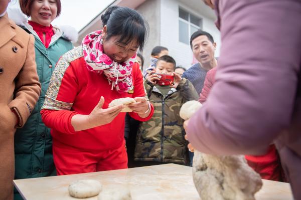 1月16日,在湖南省辰溪县孝坪镇坪里村,村民们参加制作糍粑比赛。