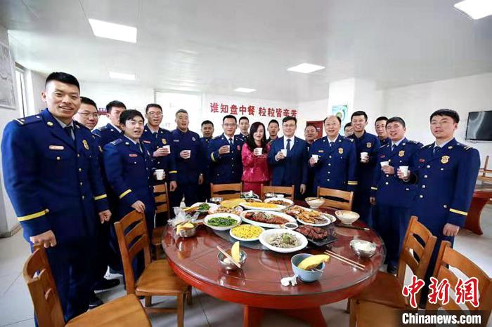 新春临近,一场热闹而简洁的婚礼在宁夏石嘴山消防救援支队惠农区大队举行。新郎常彦峰和他的新娘在所有人员的祝福中,一起吃了一顿团圆饭。