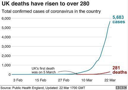 根据英国卫生与社会保健部消息,截止当地时间3月22日9点,英国新冠肺炎确诊病例达5683例,单日新增665例;死亡281例,单日新增48例。(总台记者 康玉斌)