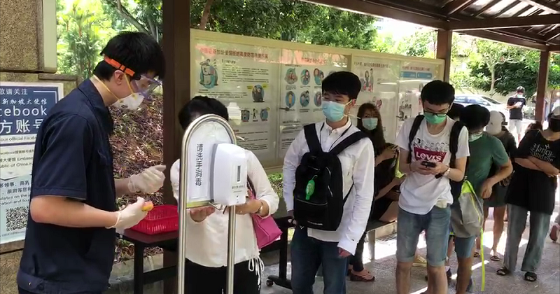 为应对疫情 中国驻新加坡大使馆为中国公民发放口罩