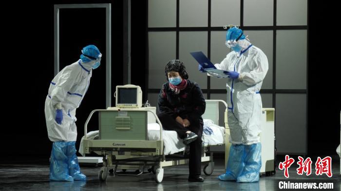 抗击疫情舞台情景剧《天使之爱》演出剧照。天津人艺供图