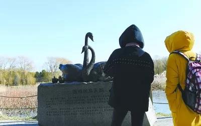 狮子林景区竖起“圆明园黑天鹅”雕塑,向游人讲述黑天鹅的故事。