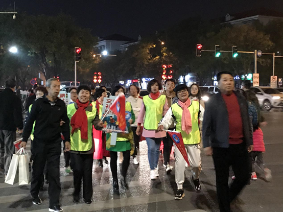 此次活动志愿者来自微信公号“北京大妈有话说”宣传队的成员,在当天路口指引过程中,他们将老年人的亲切引导方式发挥到了淋漓尽致。“小朋友们靠里站,等绿灯时再走哈!”“老大哥,您一会儿跟着我们走,注意安全”,亲切的引导声此起彼伏。