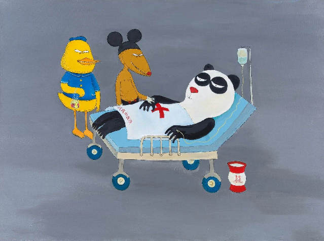 不少国内艺坛的青年艺术家也在参展之列,如90后艺术家秦铃森用水墨和街头艺术结合,创作出作品《兔狲》;白乂乂在这次展览中推出他的数码涂鸦概念作品;刘銧銧一改以往风格,在疫情期间用iPad创作出以酒吧为背景的作品。展览中还有跨界面孔,“新裤子”主唱彭磊携画作《暖壶之五》等画作亮相,摇滚乐手池磊也带来了新锐艺术创作。