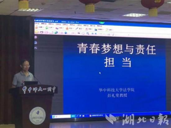 今年54岁的彭礼堂从教已30年,勤于教学的同时,十年前开始他热心教育公益。“当时是代表学校去家乡麻城招生。我来自农村,了解那些走入大城市农村孩子的心态和需求,觉得应该跟踪关怀他们,使他们越来越好。起初只是帮扶麻城、黄冈在华科就读的孩子,没想到后来范围越来越大。”在华中科技大学,无论是学校新进教师培训,还是法学院本硕博新生开学,第一门课经常是彭教授的励志讲座。学校贫困生和义工平时的校园生活,选调生入职岗前培训,院系年轻老师如何应对生存压力,也都会有彭礼堂的《苦难辉煌:从曲中见直从不利中见利》《做一个对家乡和社会有用的人》《公益教育幸福人生》等励志课。