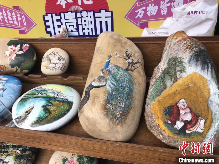 不同于油画、国画等,石头画是以石头为原材料,用丙烯材质颜料作画而成的绘画作品。