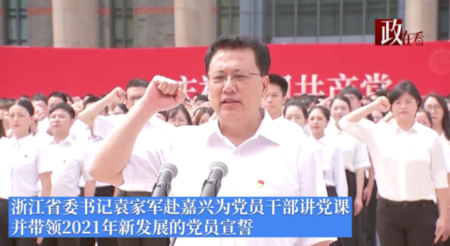 6月22日,浙江省委书记袁家军赴嘉兴为党员干部讲党课,并带领2021年新发展的党员宣誓。