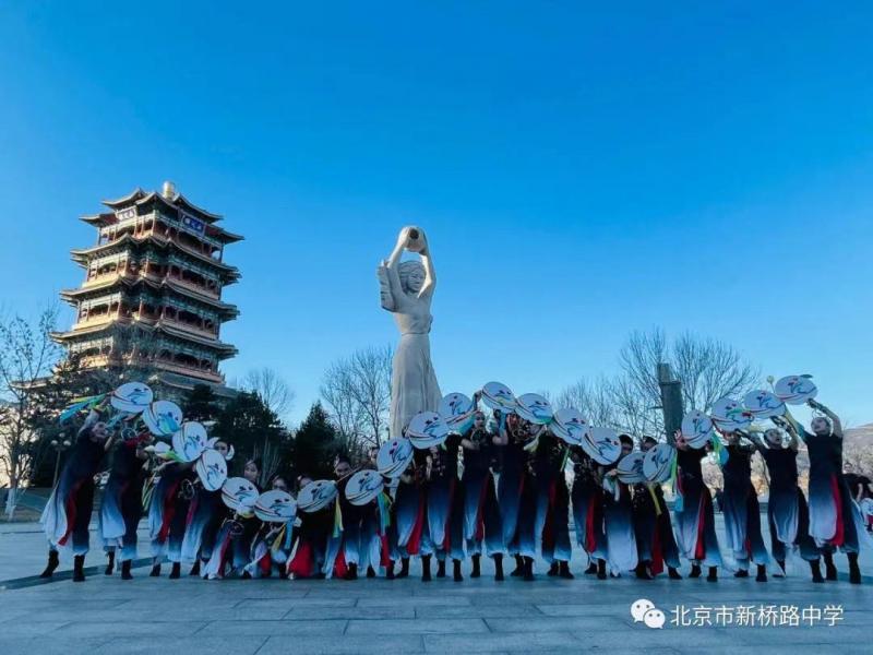 此外,学校家教协会志愿者也参与到此次活动中,协助金帆团做好化妆,后勤等服务工作。万卫红与王亚杰两位老师指导学生经过多次走位,彩排,在摄制组老师精心、专业拍摄下,在永定河女神像前,翩然起舞。