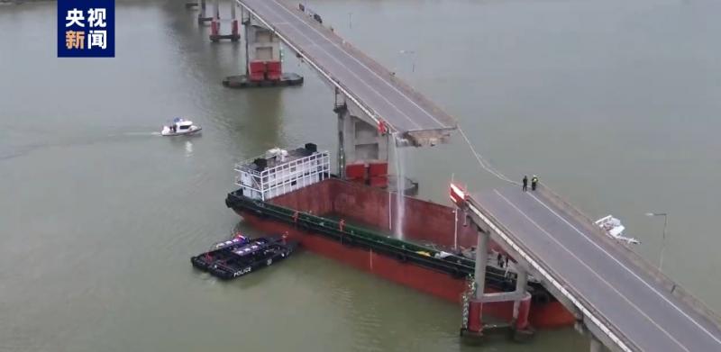 广州南沙沥心沙大桥被船只撞断 有车辆落水