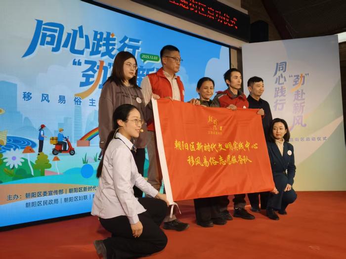 活动现场还为“朝阳区新时代文明实践中心移风易俗志愿服务队”授旗,未来,志愿服务队将主要在“婚丧简办、绿色环保、勤俭节约、诚实守信、邻里和谐、扶老爱幼、助残济困”七个方面做宣传和服务,更紧密地将移风易俗与居民需求相结合。