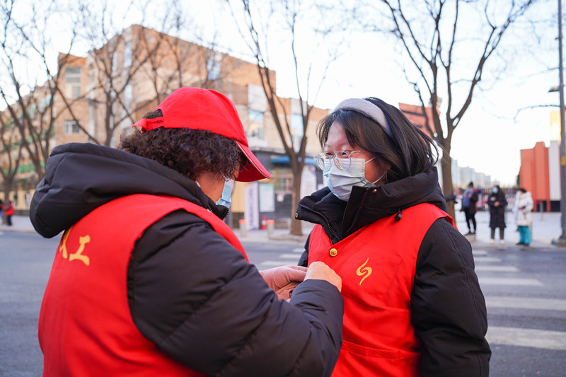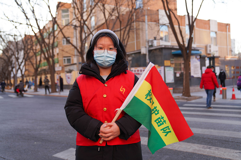 张予阳读小学时就读于银河小学,从小她就在护花队的护送下上下学,护花队的奶奶们,也陪伴见证着她的成长。趁着大学还未开学,张予阳一大早专门赶过来,希望能成为护花队的一名“临时”队员,为小学生有序入学贡献一份力量。“我的奶奶之前也是护花队的一员,现在趁着寒假期间,我从奶奶手中接过这面护花队的旗帜,想要尽自己的一份力量,护送弟弟妹妹们平安上学。”