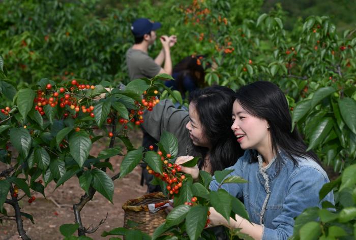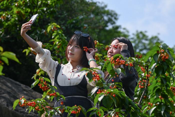 4月9日,2026年重庆璧山“云雾花涧”第十一届樱桃采摘节暨文化旅游惠民消费季活动在八塘镇云雾山樱桃谷开幕。 新华社记者 陈诚 摄