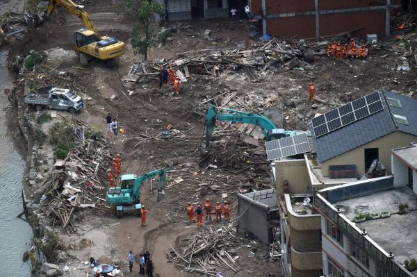 8月11日拍摄的浙江永嘉岩坦镇山早村山体滑坡灾害搜救现场。