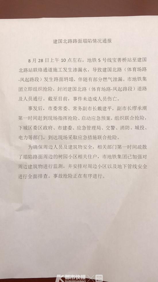 杭州路面塌陷事故原因:地铁施工发生渗漏水