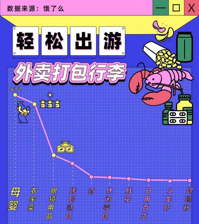 受外地游客的偏好和出行临时需求等影响,饿了么数据显示,今年五一期间,农家菜外卖增长11倍,母婴用品、药品、日用品等临时外卖需求,和小龙虾、螺蛳粉等热门宵夜订单量也均增长2倍及以上。