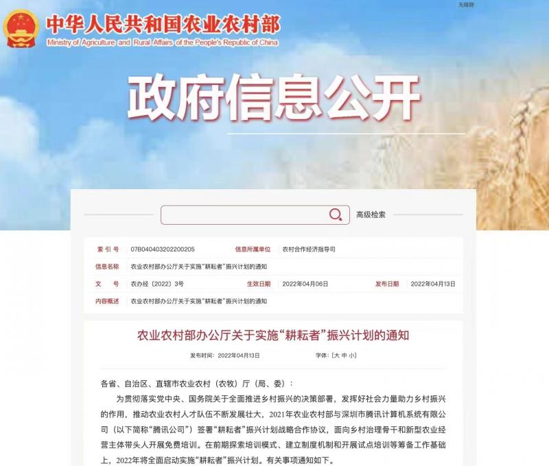 “耕耘者”振兴计划由农业农村部主导,腾讯公司出资,政企合作共同组织实施。项目突出需求导向、实践转化、长期扶持,旨在培养一批与乡村治理现代化相协调,与现代乡村产业需求相适应,能够引领一方、带动一片的乡村治理骨干和新型农业经营主体带头人队伍,真正发挥出“培养一个人、带动一个村”的作用。