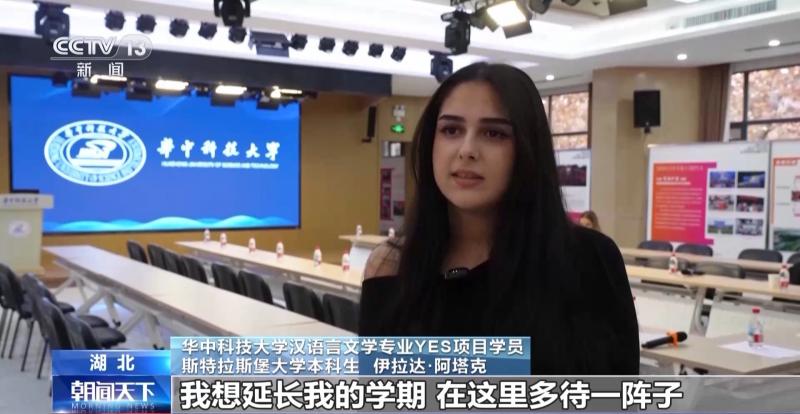华中科技大学汉语言文学专业YES项目学员 斯特拉斯堡大学本科生 伊拉达·阿塔克:我想延长我的学期,在这里多待一阵子,因为我感觉这座校园就是为学生而建的,让我们在学习的同时有好的体验。
