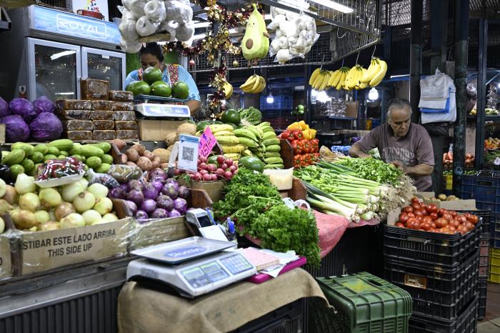 12月5日,在委内瑞拉首都加拉加斯,商户在金塔克雷斯波市场忙碌。