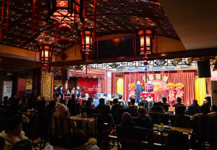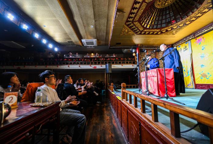 冬日里,天津相声小剧场内暖意融融,台上妙语连珠,台下掌声迭起,传统曲艺为市民冬日文化生活增添一抹亮色。
