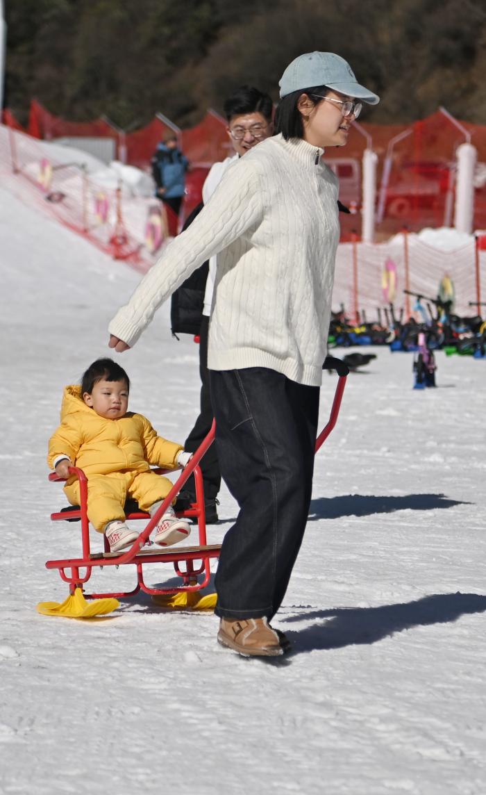 12月7日,在汶川羌人谷滑雪场,游客在娱雪区域游玩。