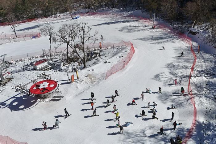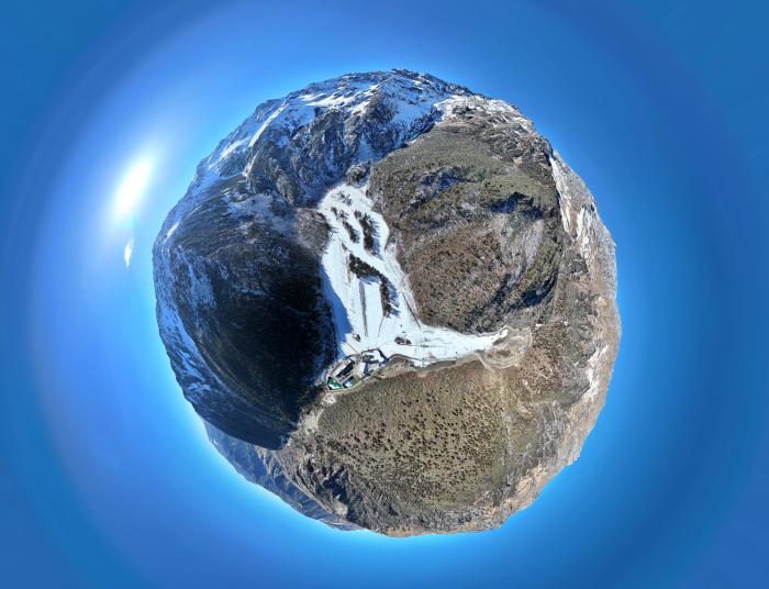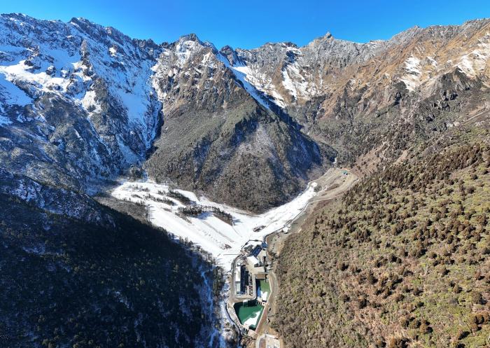 这是12月5日拍摄的汶川羌人谷滑雪场(无人机全景照片)。