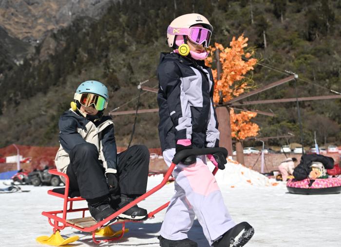 近日,位于四川省阿坝藏族羌族自治州汶川县灞州镇阿尔沟内的汶川羌人谷滑雪场开业迎客,吸引了众多滑雪爱好者和游客。