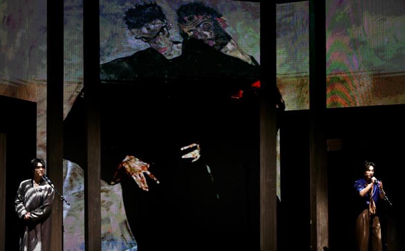 舞台呈现上的创新更让观众直呼“身临其境”。三面环绕的巨幕同步投射两位画家的经典作品,配合简约而富有设计感的舞美装置,将小剧场打造成一座流动的20世纪欧洲艺术馆。仅三位演员分饰多角,在不同时空故事中无缝切换,以精湛演技串联起两位艺术家“素未谋面却同追真理”的精神共鸣,用音乐与戏剧的碰撞打破艺术与观众的距离感。