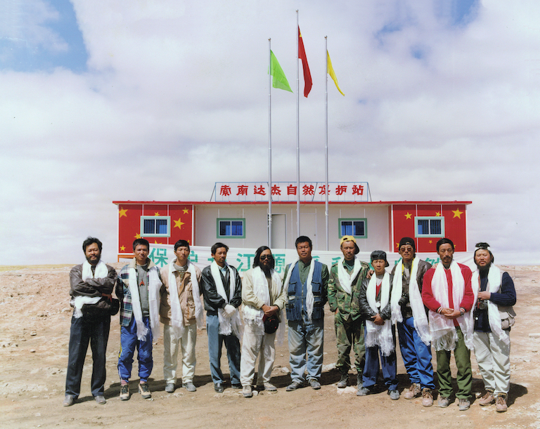 1997年9月10日,中国民间暨可可西里第一个自然保护站建成。图为索南达杰自然保护站建站志愿者(摄影:朱永)