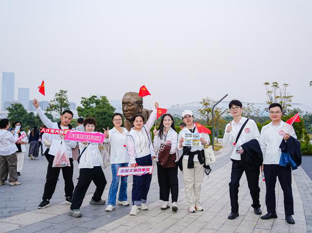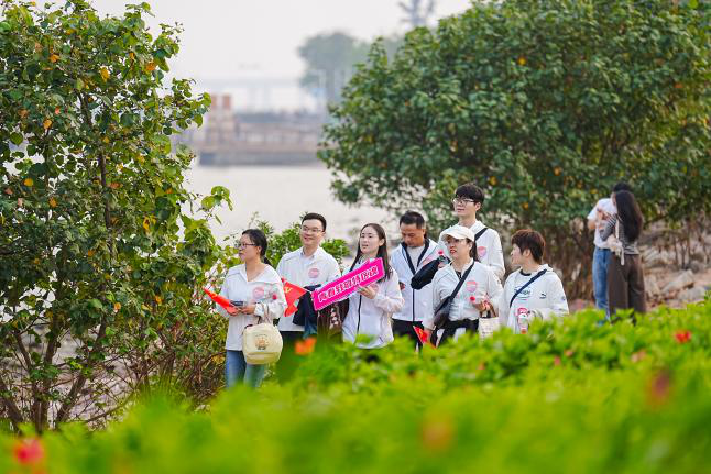 这条串联起八大地标的徒步路线,俨然一座流动的改革开放教育课堂。在观桥公园,深圳湾大桥如钢铁长虹横跨碧波,大家驻足《逐浪者》艺术装置前,聆听“三天一层楼”的建设传奇,从基建工程的技术突破中感悟改革开放的破冰勇气;在观海栈桥,红树林湿地的葱郁生机与栈道旁的蛇口港老照片形成鲜明对比,大家直感受到城市发展与生态保护的和谐共生,“绿水青山就是金山银山”的发展理念愈发深刻。