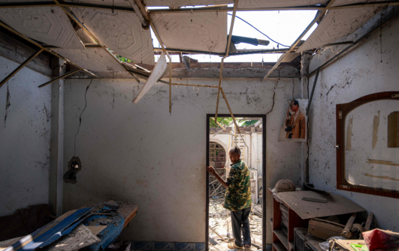 △12月9日,泰国沙缴府靠近泰柬边境的房屋在冲突中受损。