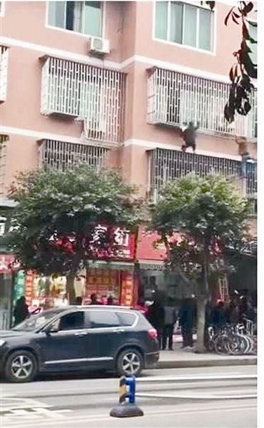 小女孩吊在三楼防护窗 施救者徒手爬上去救人