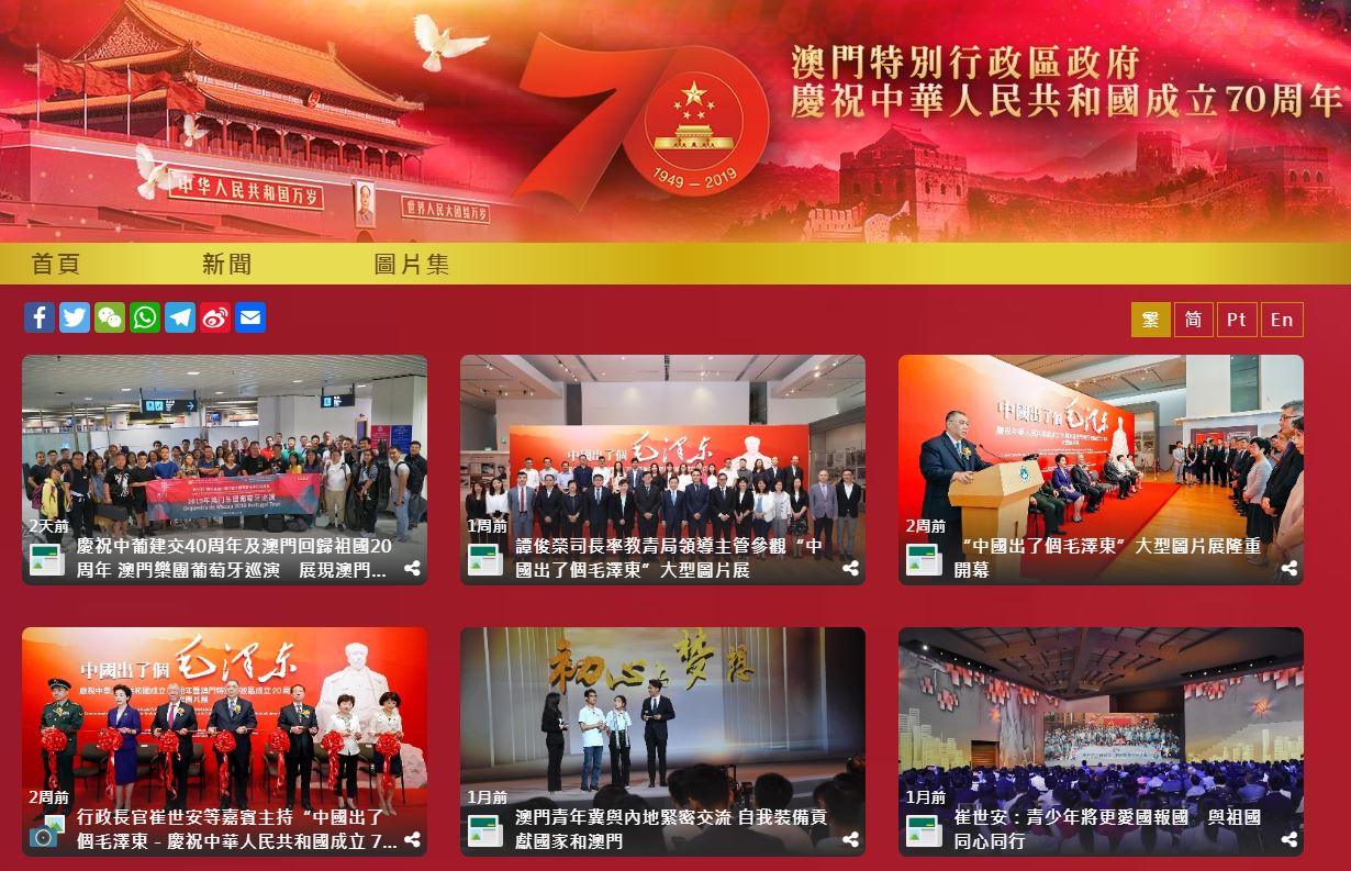 澳门特区政府开通庆祝新中国成立70周年专题网站
