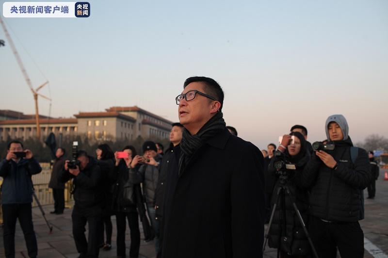 12月7日清晨,香港特区政府警务处处长邓炳强一行来到天安门广场观看升旗仪式(央视记者 冀成海 崔世杰)