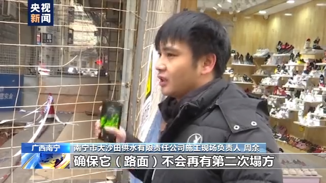 南宁市大沙田供水有限责任公司施工现场负责人周余:先清理破损管道,然后回填,确保路面不会再有第二次塌方。