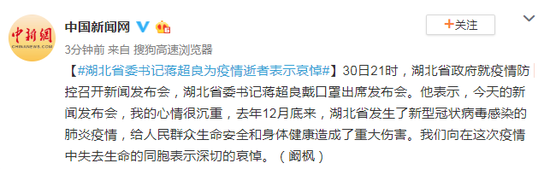 湖北省委书记蒋超良为疫情逝者表示哀悼